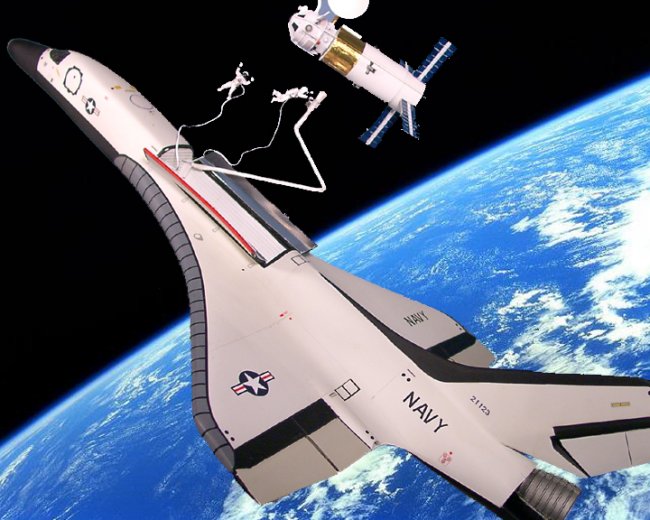 Seeing the USAF and NASA forging ahead with the STS Shuttle system in the 70s, the USN realised they would be left out of the space game if they weren't careful. Skillful manueverings in backrooms lead to Rockwell winning the contract for the Navy's
