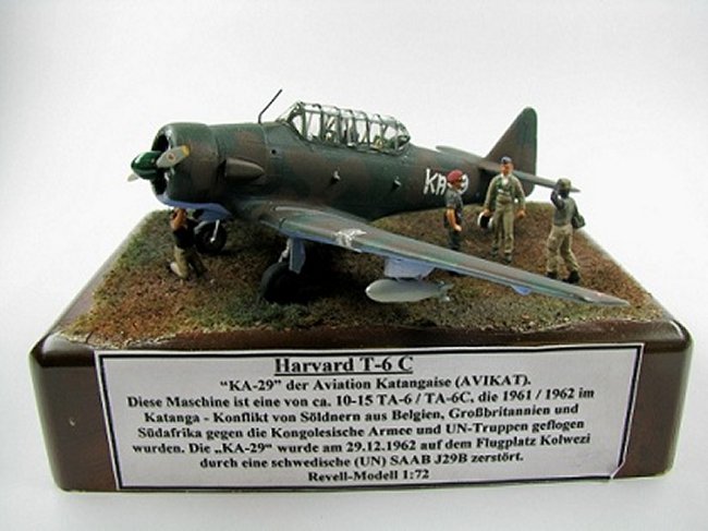 The "KA-29", a former Harvard from the Royal Air Force, RAF EX623, and later from the South African Air Force, SAAF 7184, as one of three T-6 that have been left on the airport of Kolwesi on 29.12.1962 and destroyed during a raid by a Swedish (UN) Saab J29 B “Tunnan”.