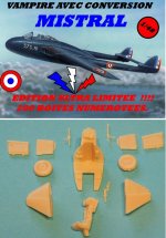 Classic Airframes Vampire with decals and resin conversion set to make a