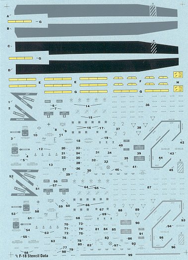 This is a decal sheet comprising entirely of F-18 Stencils and includes enough stencils for 2 complete aircraft. These decals are clearly printed in register and appear very thin so they should conform beautifully. The small stencil writing is quite clear and readable on the 1/48 sample I have before me.