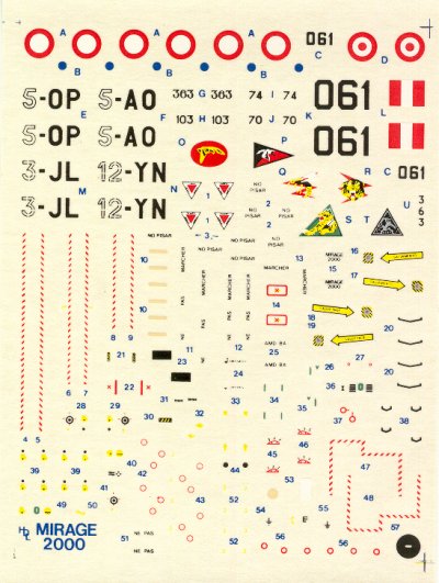 This decal sheet comes in 1/72 scale. It will permit you to build one of 6 different Mirage 2000's. The 4 decal options include 5 from the French Air Force and one from the Peruvian Air Force. The printing quality of the decal is very good and in register.