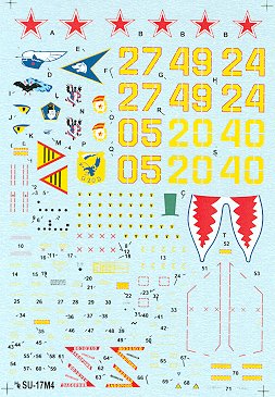 The clarity of the stencils on this sheet is very good. A very good Su-17 decal sheet with with painting scheme #7 being them all having equally interesting camo schemes, but the Shark Mouth of #1 makes it the one with the most interesting markings.