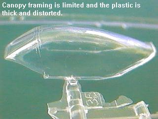 | The only real disappointment with the kit is the canopy. Frankly, it's pretty bad. It's thick, distorted and the framing is incomplete towards the rear. Compared to the rest of the kit, it's quality is poor and is probably best replaced by an aftermarket source, especially if you want to have it opened up. However, I may have been unlucky, as other people I've talked to have had canopies of varying quality, some better, some less so.