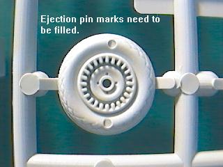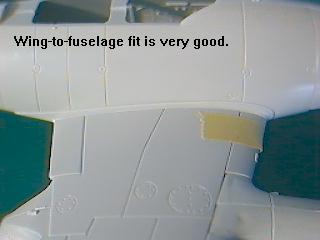 The loop antenna on the fuselage spine is much too thick for the scale, as are all the other antennas and the pitot tube. There are no provisions for separate flaps or other control surfaces. The gun camera aperture in the tip of the nose is there, but the cannon ports will need to be drilled out. Some of my references show small bulges in the middle of the gun bay panels, but these bulges are not included in the kit. Opened shell ejection ports are represented under the nose.